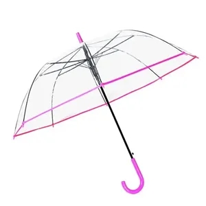 This clear bubble umbrella provides full personal coverage without hindering visibility, so you can see and be seen. This clear dome umbrella features a steel shaft with a classic curved handle design. It often used for weddings, outdoors, camping, school, business, rain, etc. Support customizing your logo.