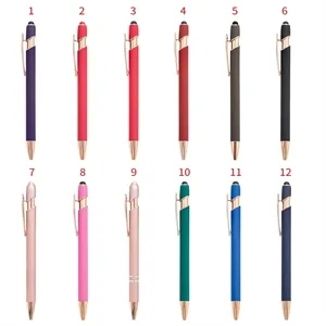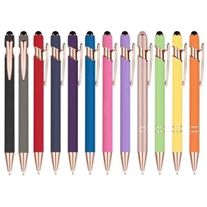 Click action black ink ballpoint pen with stylus. With super soft touch, it is very suitable for office manager. Soft Touch Ballpoint Pen with Rose Gold or silver Accents