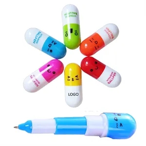 The pen features a precision 1mm blue ink ballpoint pen, size is 2.36*0.98 inch, the engineered for effortless writing, delivers skip-free, smear-resistant ink flow. The plastic barrel ensures durability and a professional look. This ballpoint pen is stretchable, with cartoon expressions and a capsule pill shape. Perfect for offices, students, or daily notes.Add your company name or logo to this and show customers what you can do for them.Expand the reach of your brand today!