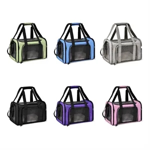 This pet carrier provides two connecting loop handles for balanced carrying as a dual seat belt or luggage strap to secure transport.