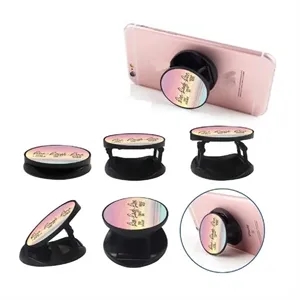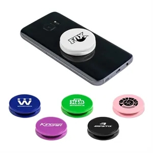 Answer the call for proper promotion with this colorful cellphone tool! This round phone grip and stand is made of durable ABS plastic and features a three-position tilt for multiple phone placement options. Use the adhesive to attach it to your cellphone. When closed, it makes for a finger grip - and raise it up to hold your phone. Available in black or white. Add your school, sports team, organizational or company logo or message through our full color process to make it your own.