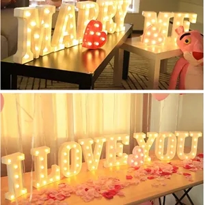 Marquee letter alphabets, Light up your favorite words for special occasion, event, or home decorating. 39 alphabetic character LED lights, including 26 letters,10 numbers,&,red and pink heart figure,such as for arbitrary combination into I LOVE U, HOME, MARRY ME, U&M, etc,combine them to express what you wanna say at Party, Birthday, Anniversary, Christmas, Holiday, Wedding, Garden, or other Night Activities. Made of Plastic, Requires 2 AA batteries, not included, can be hung (has keyhole slot in back for easy hanging) on walls, mantels or placed on top of a reception table during your event or celebration. Measuring 6.3" in height, these letters are perfect for showcasing your favorite words and phrases.We also have height 8.7" for your option, welcome to inquiry us!
