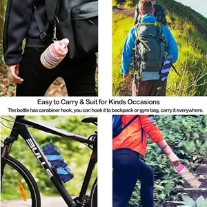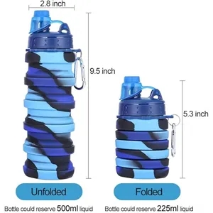 Whether camping or sports, there is always water to drink. Sports water bottle made of food grade silicone, non-toxic, tasteless. Foldable bottle with adjustable volume and size, unique design to shrink freely, easy to carry, capacity of 17oz (500ml)