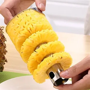 The Stainless Steel Fruit Corer and Slicer is a must-have kitchen tool for pineapple lovers. Made from high-quality stainless steel, this durable and corrosion-resistant slicer effortlessly removes the skin and core of pineapples, allowing you to enjoy fresh fruit in seconds. Its ergonomic handle ensures a comfortable grip, providing excellent control while slicing. The innovative design features a spiral cutting mechanism that produces perfectly uniform pineapple rings, minimizing waste and maximizing flavor. Compact and easy to clean, this fruit peeling machine is ideal for home use, parties, or gatherings, making pineapple preparation quick and enjoyable for everyone. Enjoy the delicious taste of fresh pineapple without the hassle!
